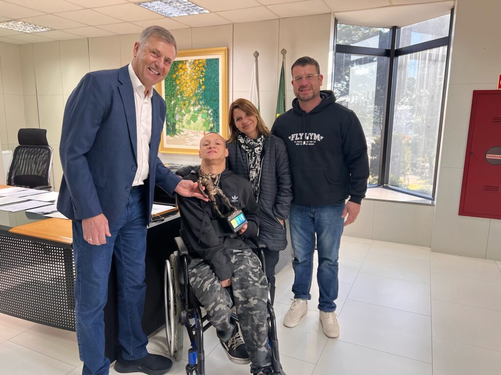 A visita teve como objetivo agradecer o apoio recebido, essencial para viabilizar a participação de Erik no campeonato nacional. Além do secretário Luizão, também apoiariam para essa viajem o vereador de Curitiba Leônidas Dias (@leonidasdias) e o próprio Foggiatto, ambos grandes incentivadores do atleta.