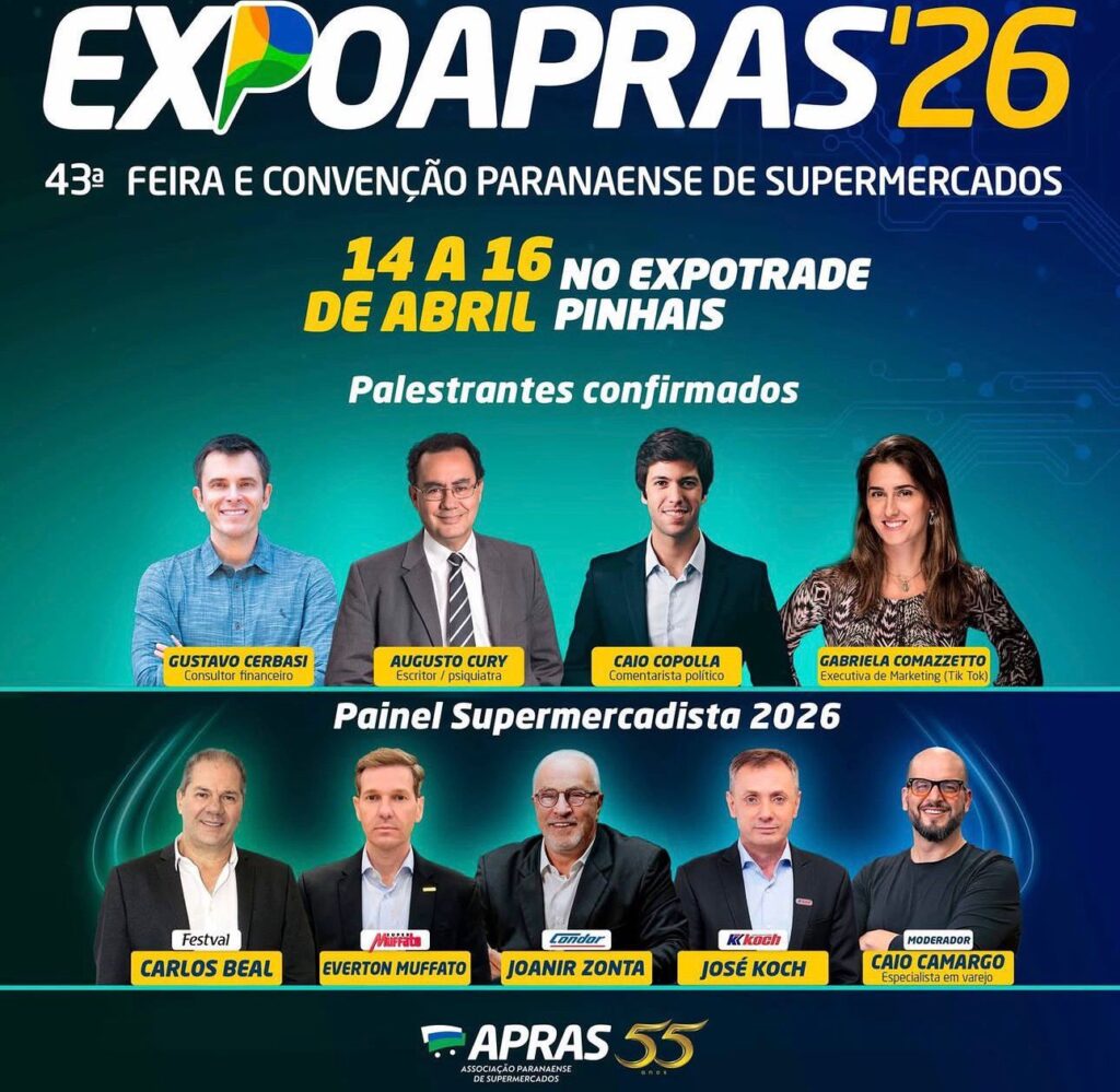 De 14 a 16 de abril, o Expotrade Pinhais, na Região Metropolitana de Curitiba, será palco da ExpoApras 2026, um dos principais eventos supermercadistas do Brasil.